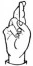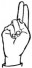 На ћирилици написано ХРАНИМИР РУХТЕСКИ састоји се из 16 слова [?]. Исписано ћириличном једноручном азбуком за глувонеме:
